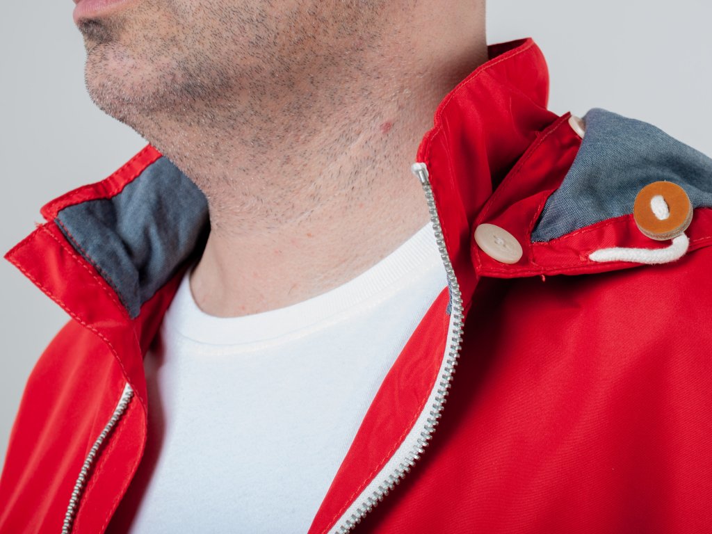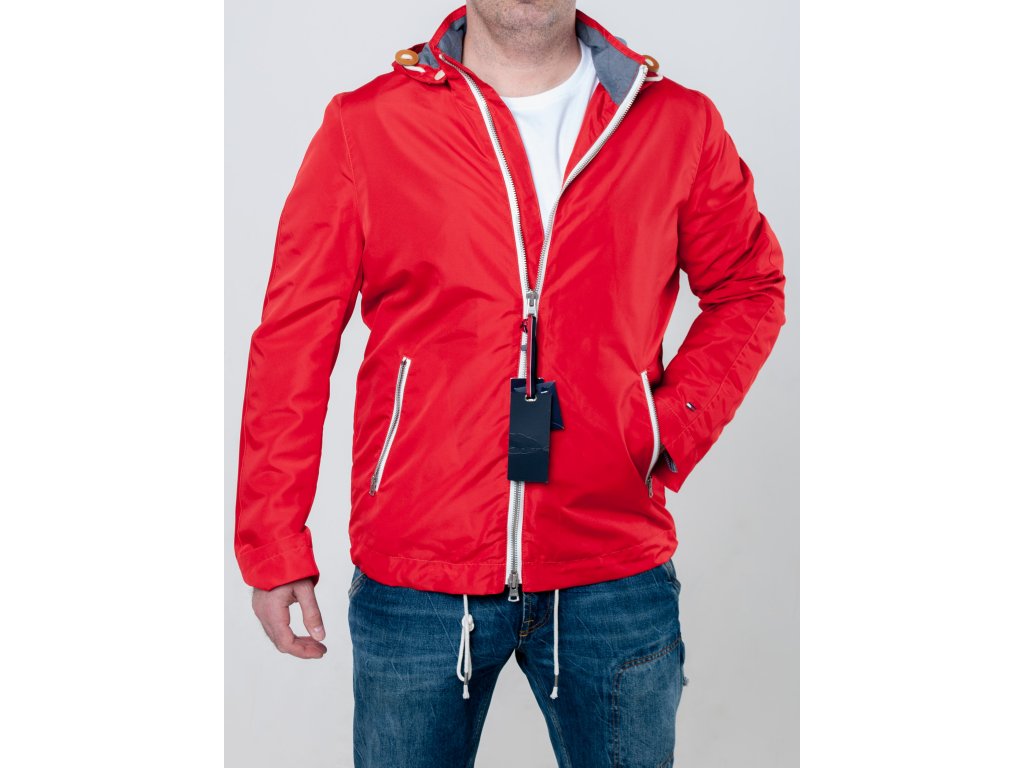 Červená prechodná bunda s kapucňou
