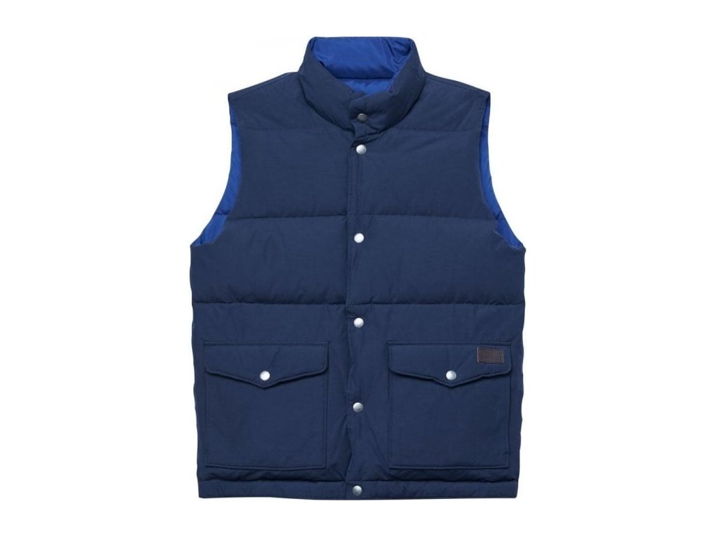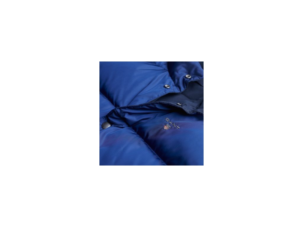 Obojstranná pánska vesta vo farbách modrej a tmavomodrej. Zapínanie má na cvočky. K dispozícii sú vrecká z oboch strán a putko na zavesenie. Vestu zdobí vyšité logo Gant.