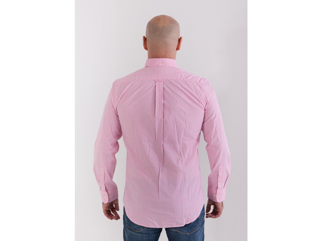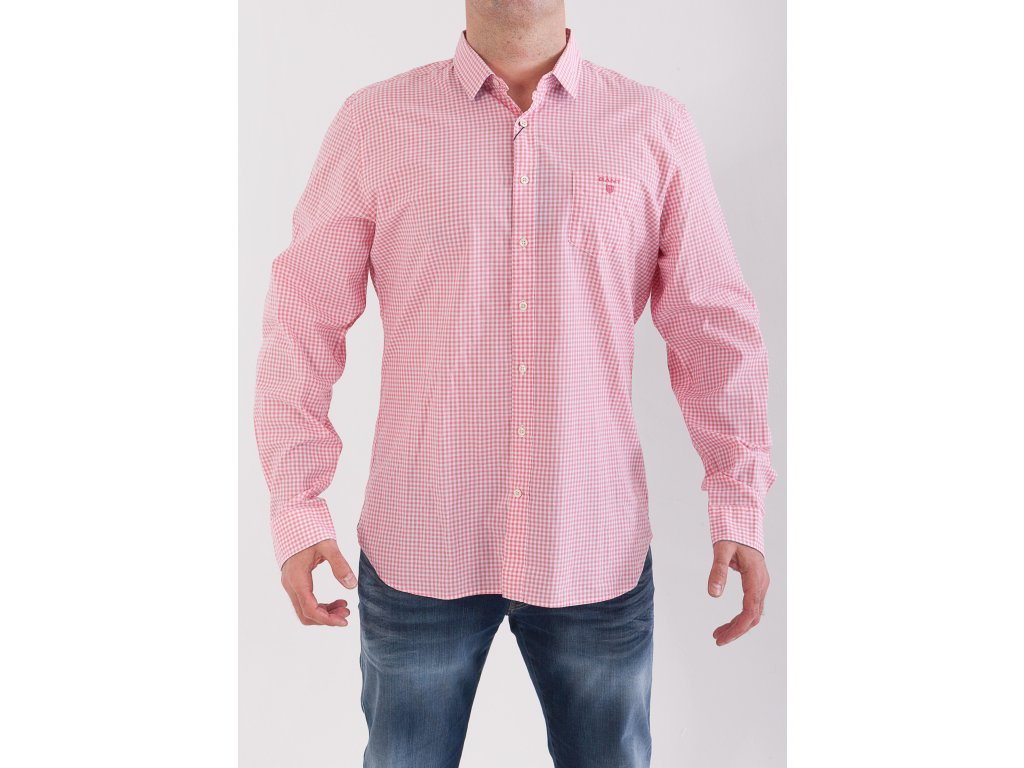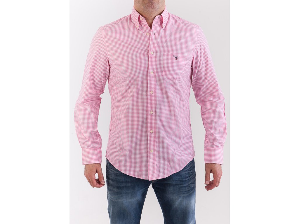 Pánska kockovaná košeľa klasického strihu. Botton down golier s tromi gombíkmi, vyšité GANT logo a vrecko na hrudi, boxový záhyb a pútko na zadnej strane. Táto košeľa sa dá skvele kombinovať s jednofarebným pulóvrom alebo sakom.
