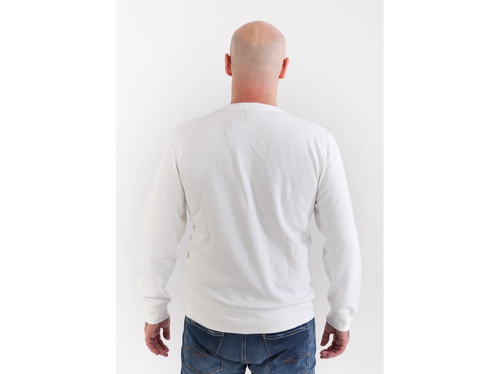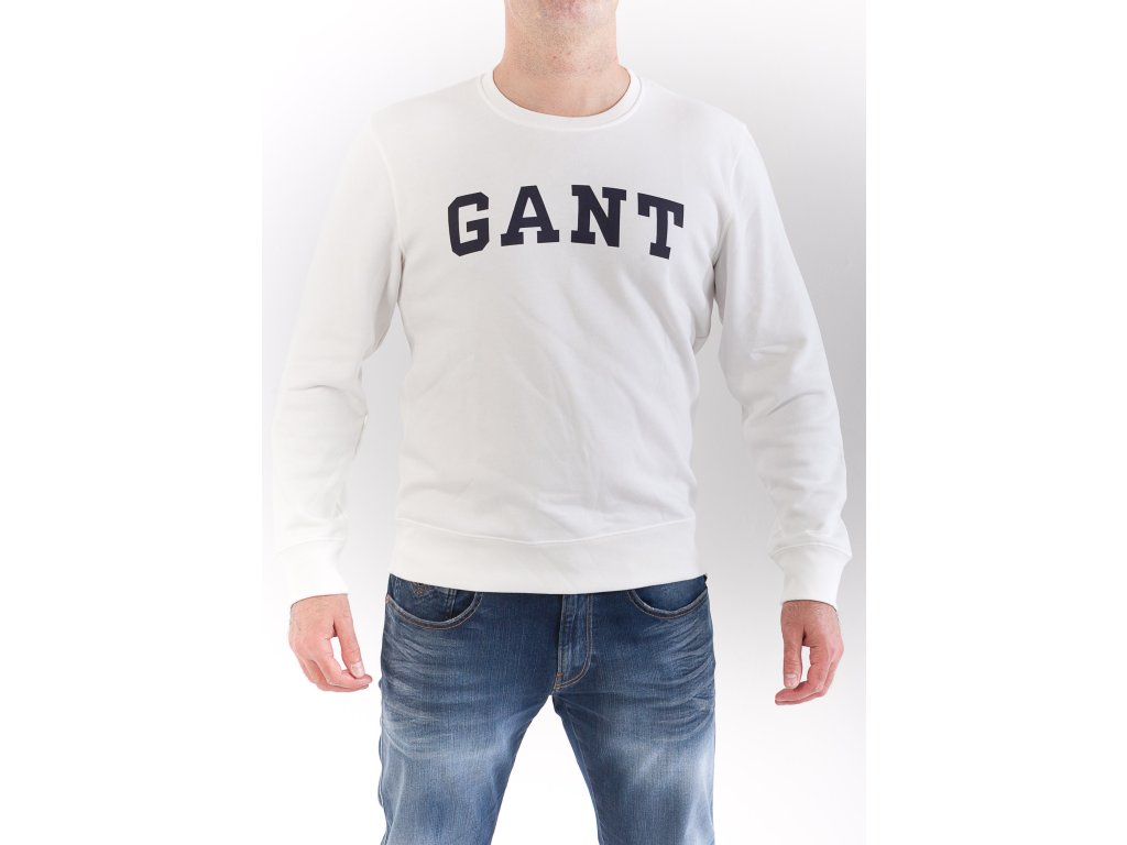 Buďte ako v perinke zababušený v snehovo bielej mikine s veľkým čiernym nápisom GANT, okrúhlym výstrihom a s patentami na rukávoch a v páse.