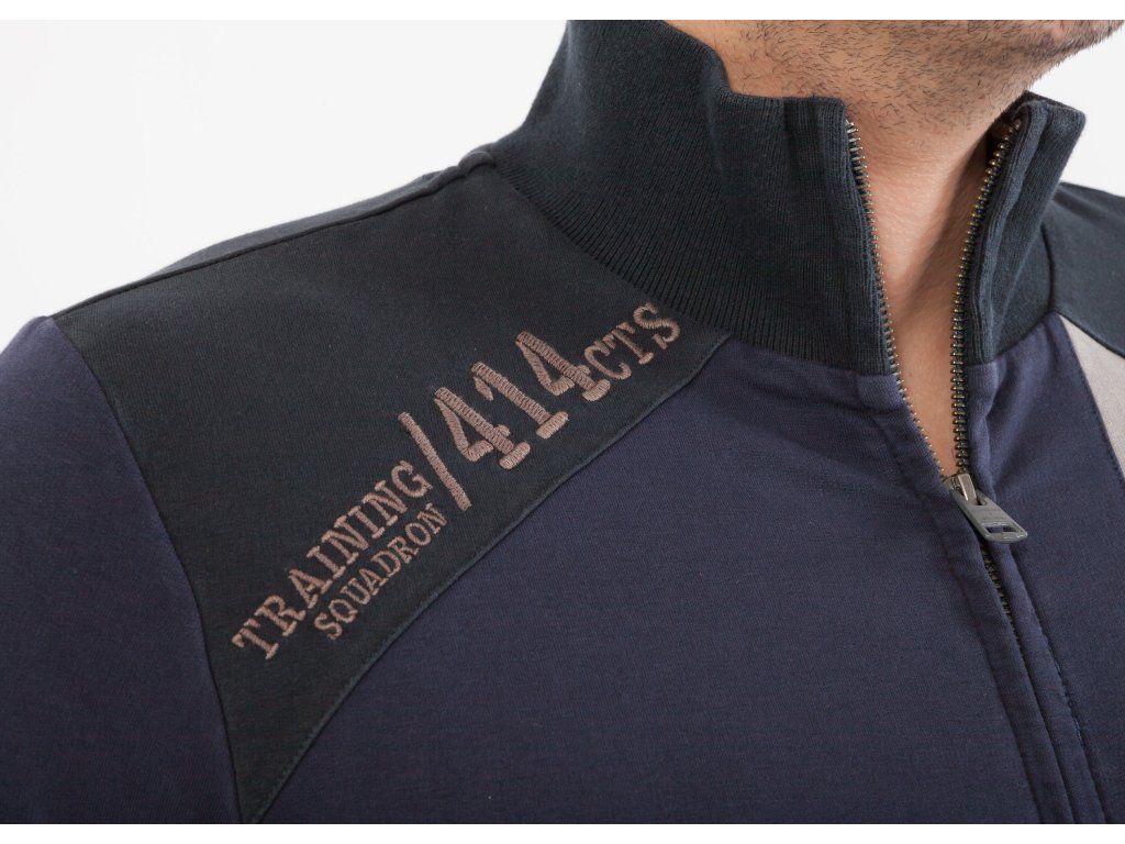 Milovníci tejto značky si prídu na svoje. Je v tmavomodrej farbe a má na ľavej strane hrudníka béžový pás s vyšitými nápismi. Ešte jeden nájdete na pleci a pri vrecku. Zapínanie má na zips až po krk, dve vrecká a patenty na rukávoch a v páse.