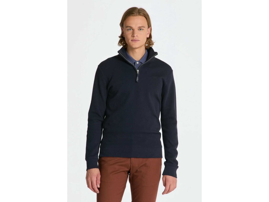Tmavomodrá waffle mikina Gant s polovičným zipsom