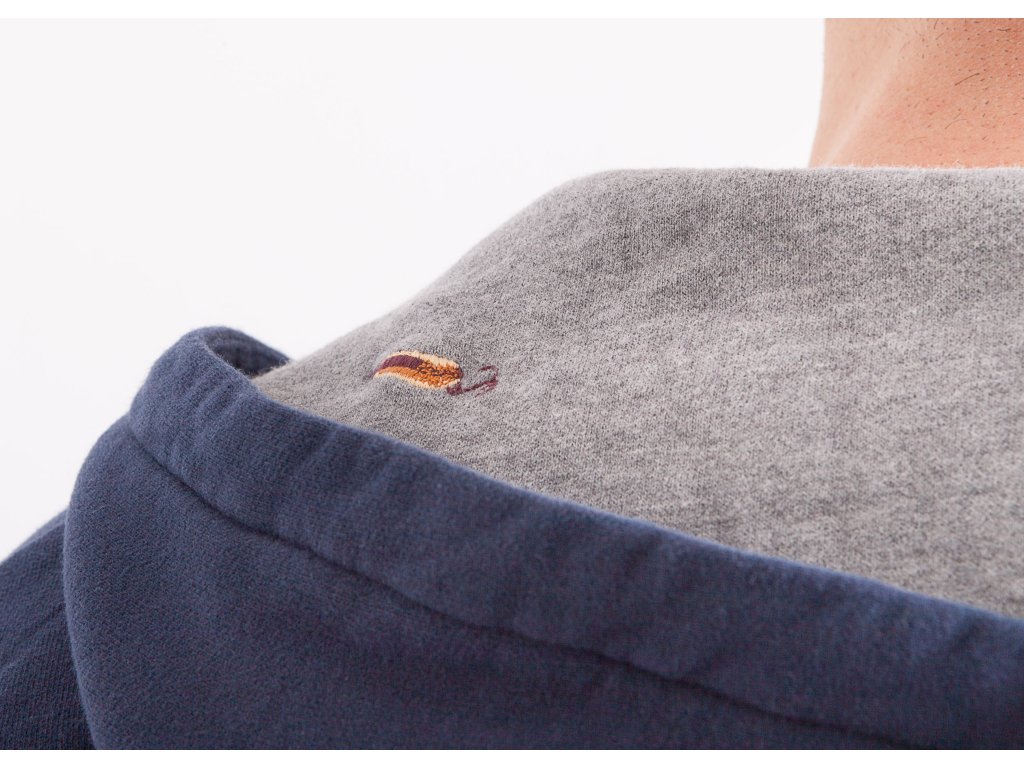 V dávnejších časoch vyšla z dielne špeciálna kolekcia CAMP a z nej je aj táto mikina. Výšivky na mikine, háčik, plavák a návnada ručne vyšité do kapucne sú neodmysliteľnými potrebami každého rybára. Ak nie ste lovec rýb, nevadí, stačí ak sa vám páči. Má zapínanie na zips, 2 vrecká, spomínanú kapucňu so šnúrkami a patenty v páse a na rukávoch.