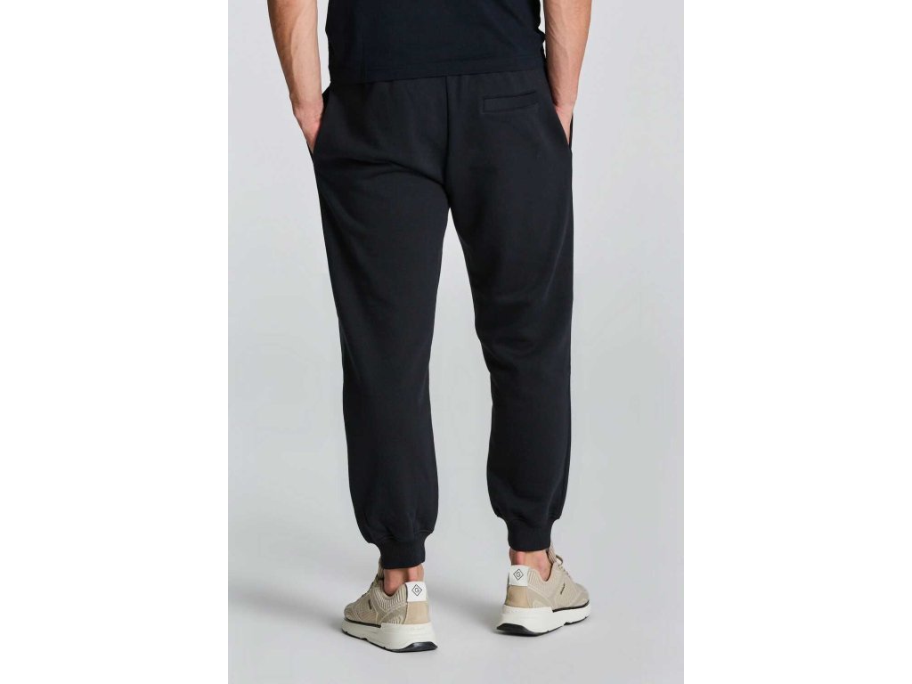 Pánske bavlnené tepláky s rovným strihom nohavíc, ktoré sú prakticky zakončené rebrovaným nápletom. Pružný pás so všitou šnúrkou na prípadné stiahnutie, štandardná výška sedu, dve bočné šikmé vrecká a jedno zadné vrecko. Tonálne vyšité logo Gant na ľavom stehne. Príjemne mäkké zloženie materiálu je vďaka svojej poddajnosti a pružnosti veľmi pohodlné počas nosenia. Výhodou kvalitného spracovania je tvarová a farebná stálosť. Praktický voľnočasový kúsok, ktorý je vhodný na športové aktivity a chvíle oddychu.